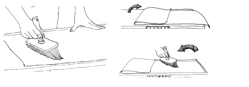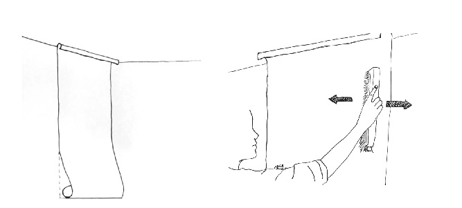 Ensuite, il faut fixer la moitié d’un lé en partant du centre vers les bords. La partie encollée doit être ensuite repliée sur elle-même sans que le pli formé soit écrasé. La même opération doit être répétée pour la seconde moitié. Pendant 5 à 10 minutes, laissez les lés détremper.