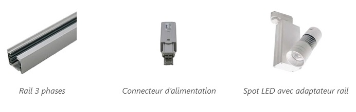 Le rail 3 phases comporte en fait 3 circuits séparés, offrant des possibilités multiples de gestion d’éclairage. Pour les applications domestiques, le rail 1 phase sera le plus souvent suffisant.