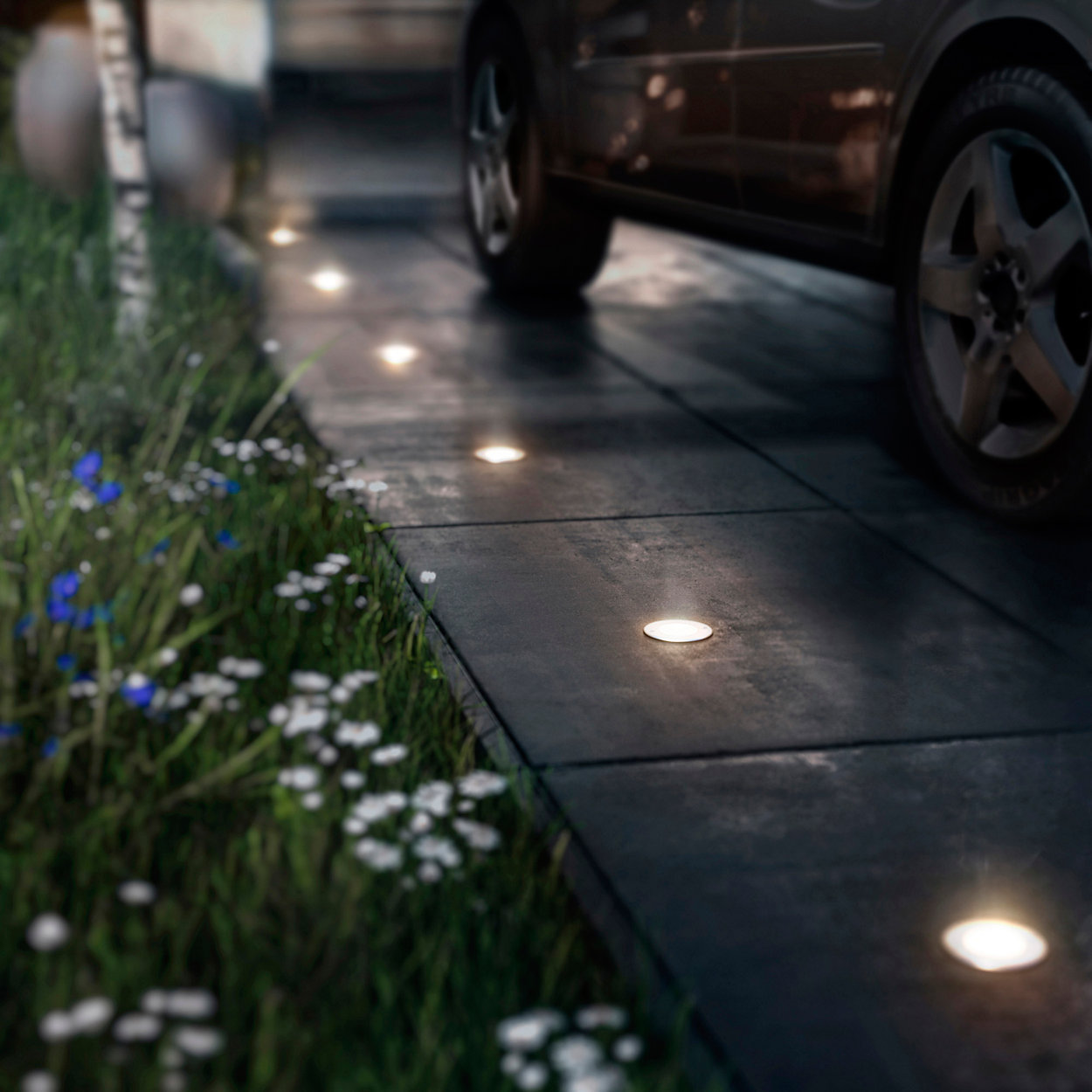 -Installation & formes : longiligne, rond ou carré, trois formes pour couvrir tous vos besoins et pour s’adapter à n’importe quelle situation. Certains spots pourront également être bombés à leur surface pour dépasser du sol et être visibles même éteints !