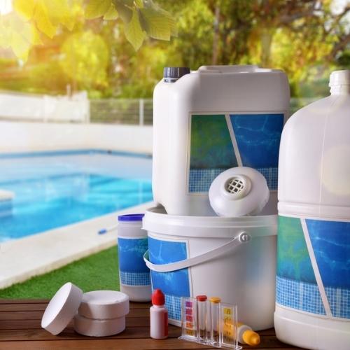 -Produits de traitement indispensables au rééquilibrage de l'eau d'une piscine.