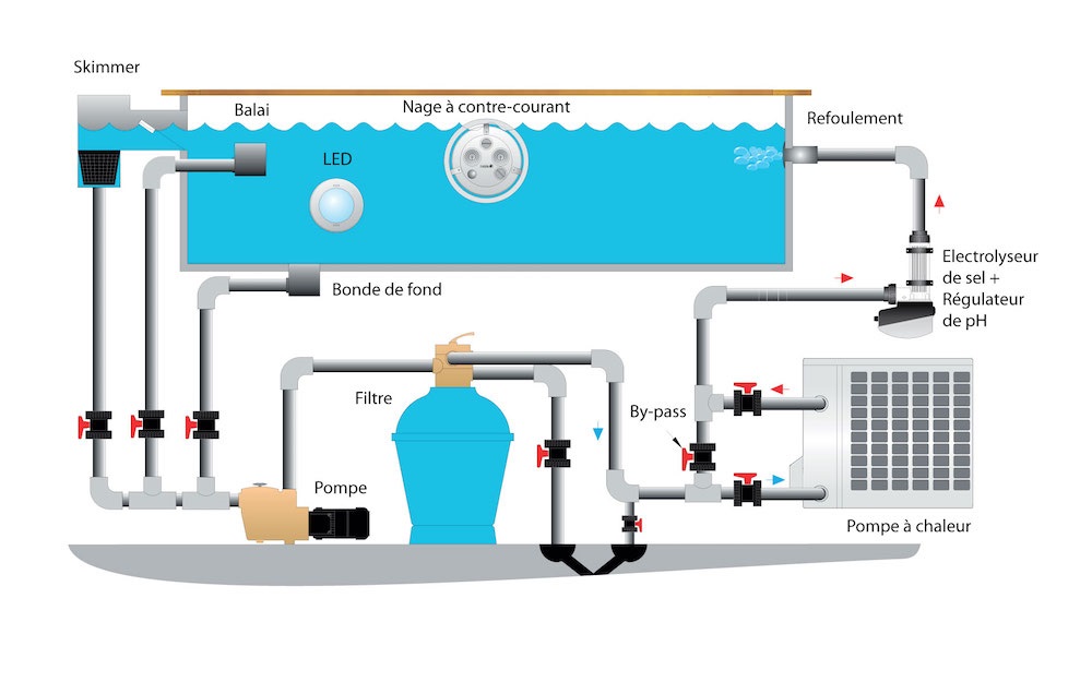 •Il est possible d’opter pour différentes méthodes de traitement récurrent de l’eau : le chlore, le brome, l’électrolyse au sel, les rayons UV, le PHMB, l’ozone et l’oxygène actif.